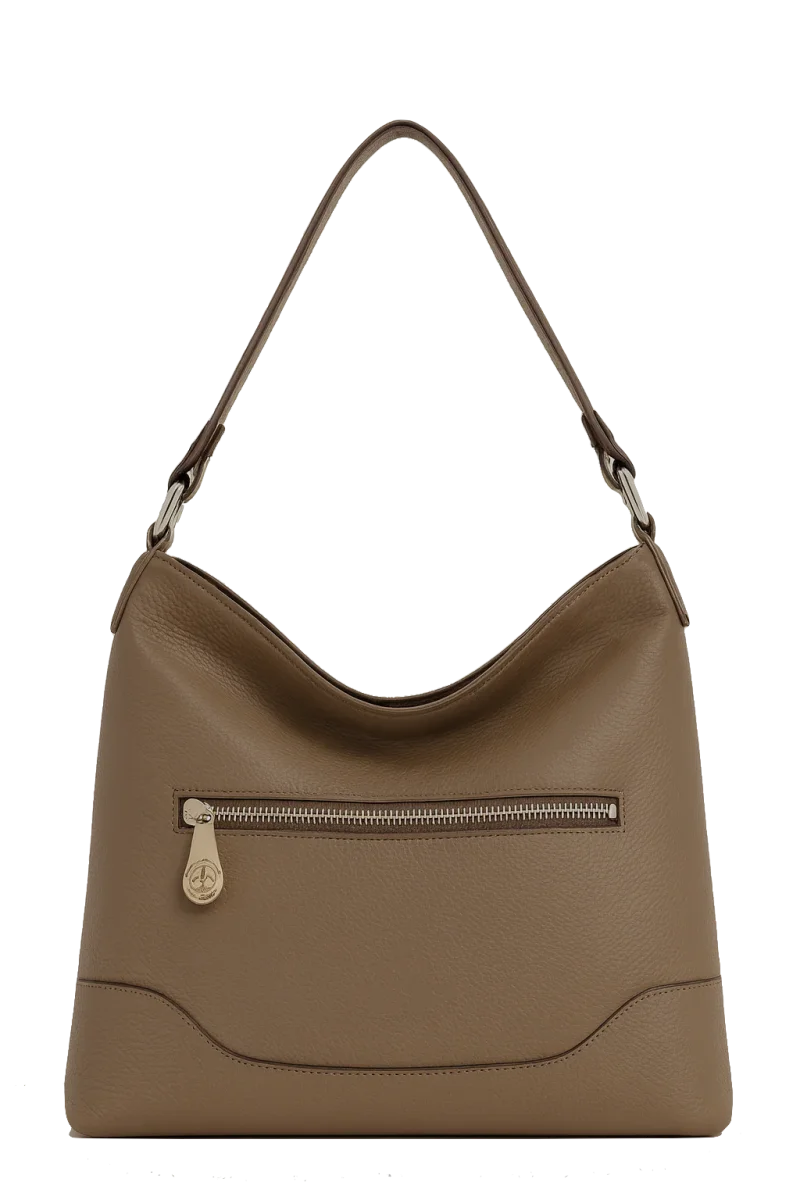 Fabriquée en cuir de veau grainé, cette besace offre une texture douce et agréable au toucher, tout en garantissant une excellente durabilité. Sa couleur taupe, une teinte neutre, se marie aisément avec une multitude de tenues, ajoutant une touche d’élégance à votre look.