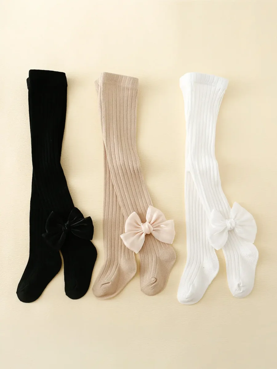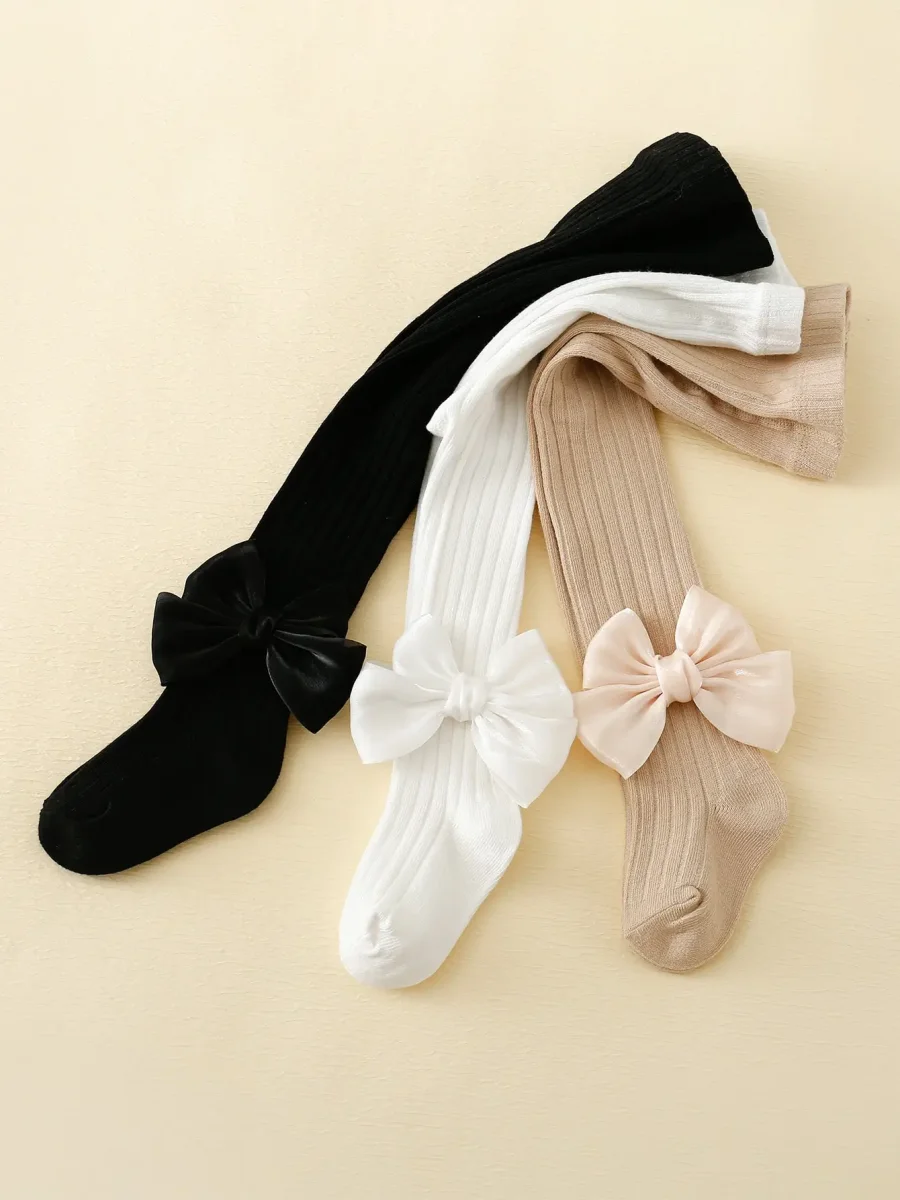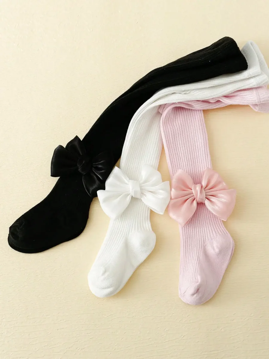 Lot de 3 Collants Fille avec Nœud – Élégance et Confort