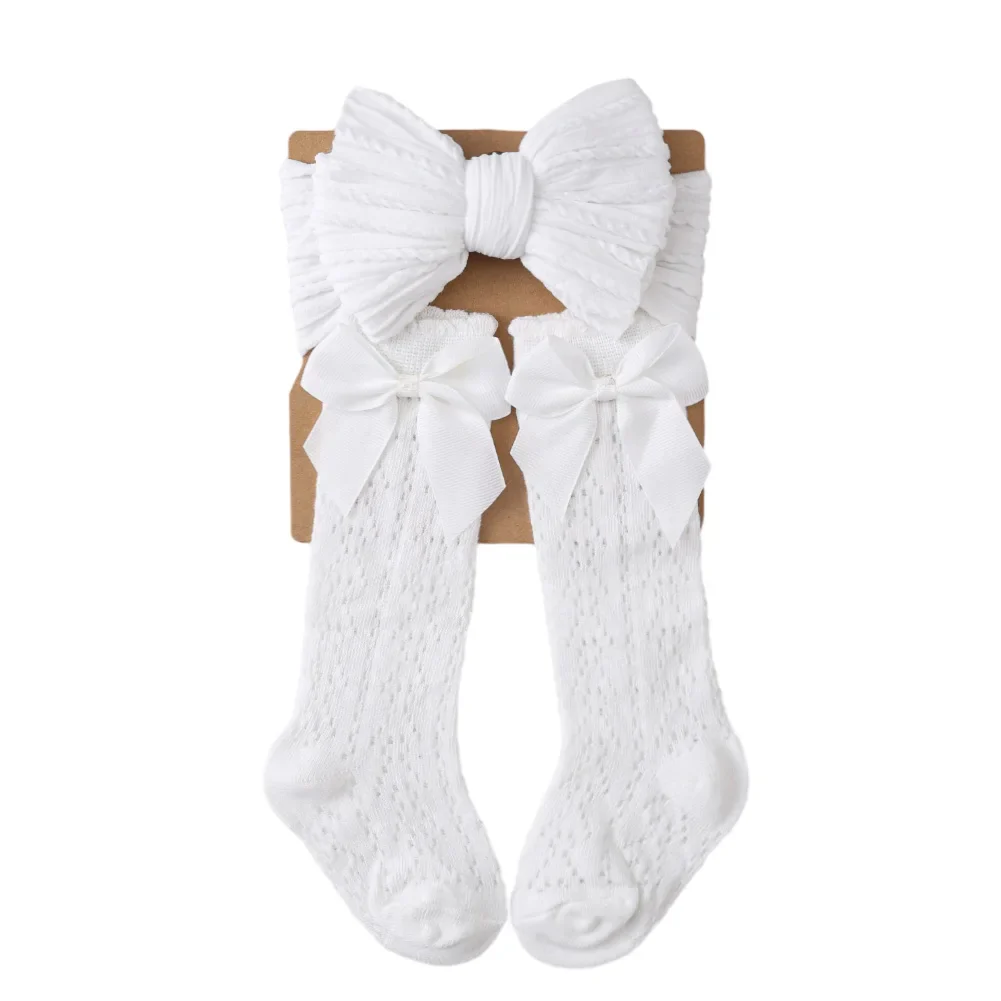 - Style : Chaussettes hautes avec grand nœud décoratif