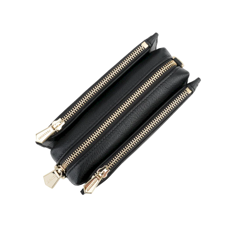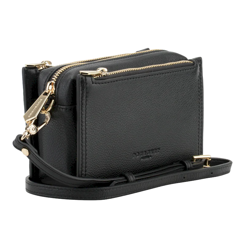 Le trotteur se distingue par sa couleur noire, qui lui confère une allure intemporelle. Les fermetures zippées dorées ajoutent une touche de sophistication, tout en garantissant la sécurité de vos effets personnels. La bandoulière, réglable et amovible, permet de le porter à l’épaule ou en travers du corps, offrant ainsi un confort optimal.