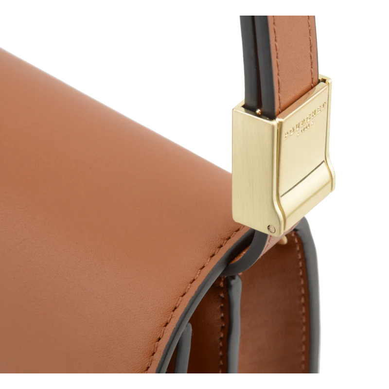 La bandoulière ajustable permet de le porter en travers ou à l’épaule, offrant ainsi un confort optimal. Elle combine du cuir camel avec des éléments en cuir noir, créant un contraste visuel intéressant. La fermeture à clip en métal doré garantit la sécurité de vos affaires tout en ajoutant une dimension esthétique.