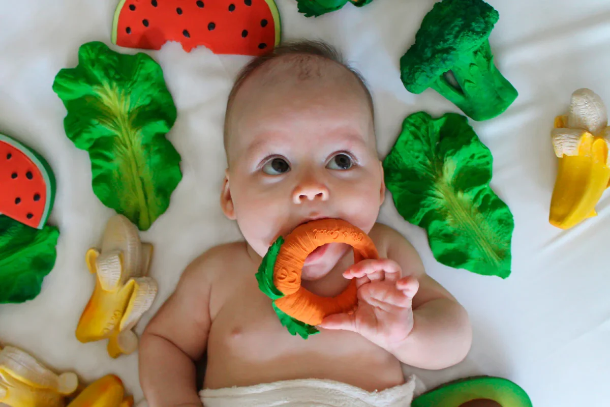 Oli & Carol est devenue en peu de temps la référence des jouets en caoutchouc naturel. Ses morceaux de fruits et de légumes sont iconiques pour de nombreux parents. Créée par 2 soeurs barcelonaises, Olimpia et Carolina, lorsqu’elles avaient 21 et 16 ans, la marque a une démarche éco-responsable et sociale qu’on aime !