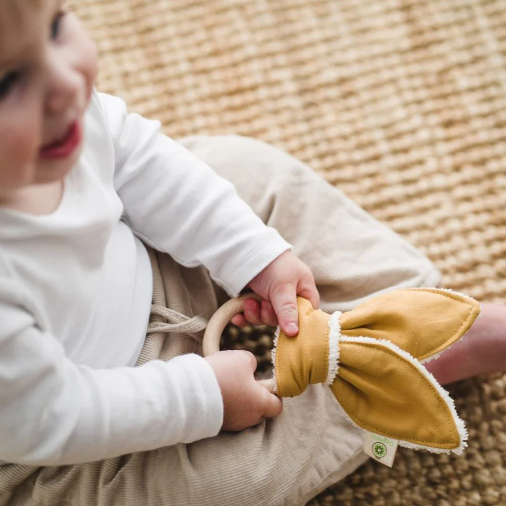Anneau de Dentition en Coton Bio Lapin Jaune Curry