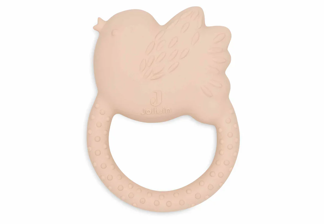 L’anneau de dentition du petit oiseau rose de la marque Jollein sera votre allié idéal pour soulager bébé lors de ses poussées dentaires.