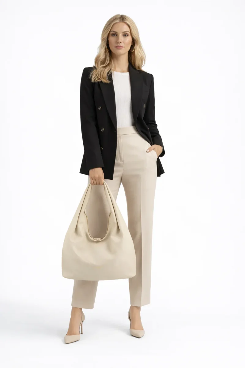 Son cuir souple et luxueux, d’une texture riche et sensuelle, invite au toucher tout enconservant une allure sophistiquée. Un véritable pont entre style et confort, l’Arche devient un indispensable pour celles qui souhaitent allier esthétique et praticité dans un esprit résolument parisien.