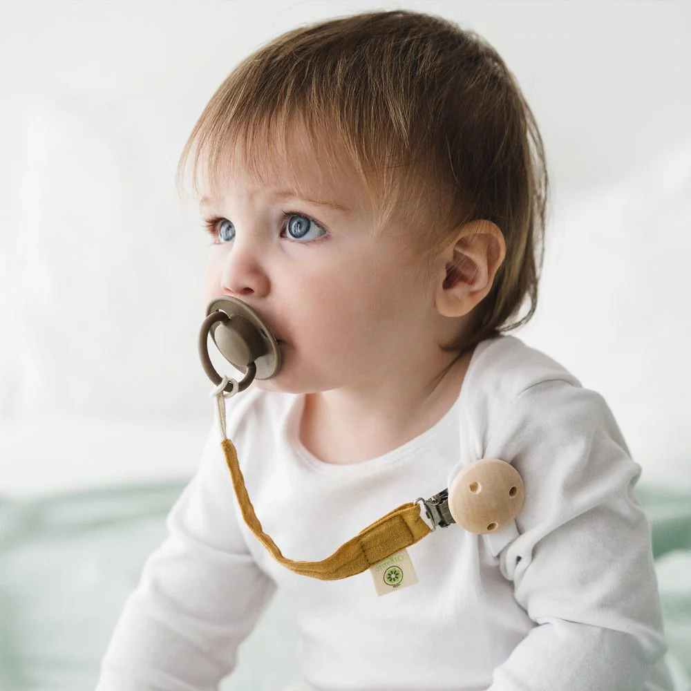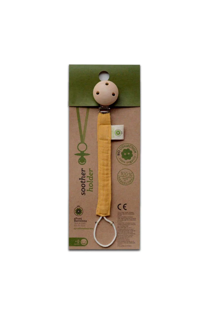 L’attache sucette coton bio GOTS Ocre est indispensable pour ne pas perdre la précieuse sucette de l’enfant. A la maison ou à l’extérieur la sucette reste propre et toujours à portée de bébé. La pince est en bois de hêtre naturel et le clip métallique est sans nickel. Elle est confeccionnée en coton biologique certifié GOTS.