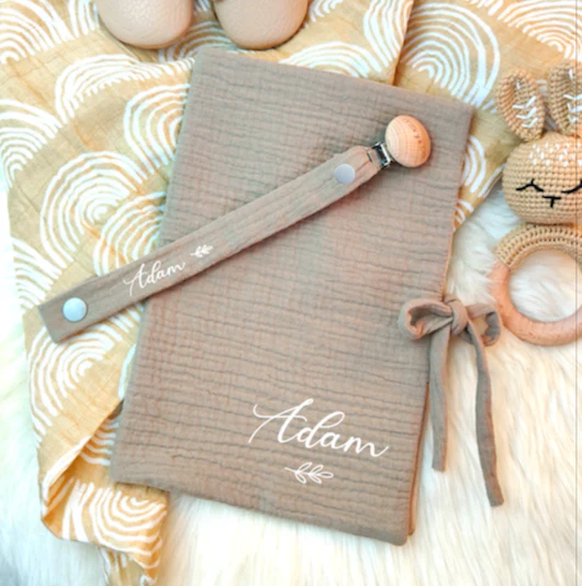 Attache tétine gaze de coton (6 coloris)