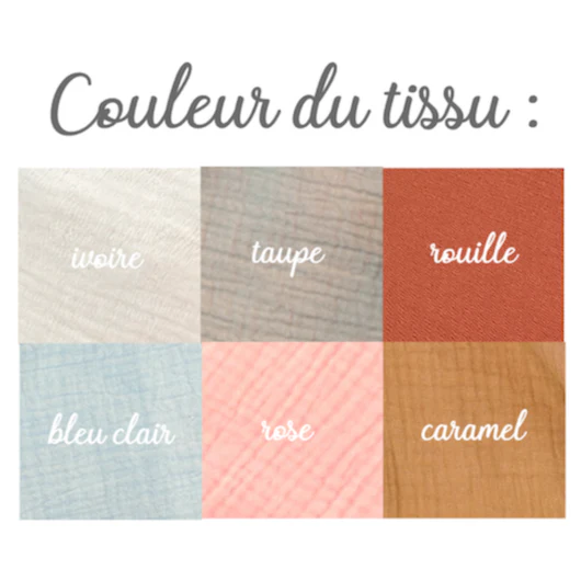 Entièrement confectionnée à la main en gaze de coton (6 coloris).
