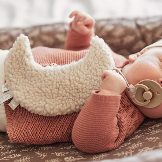 Le doudou attache sucette Lune nougat de la marque Jollein vous permettra de ne plus perdre la tétine de votre petit bout tout en le réconfortant !