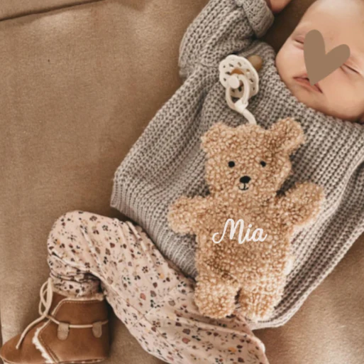 L’accessoire indispensable pour ne plus perdre la tétine de bébé, ou pour un cadeau de naissance original, cette attache tétine ourson est un accessoire à la fois mode et pratique !