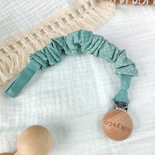 Attache tétine vert amande à pois