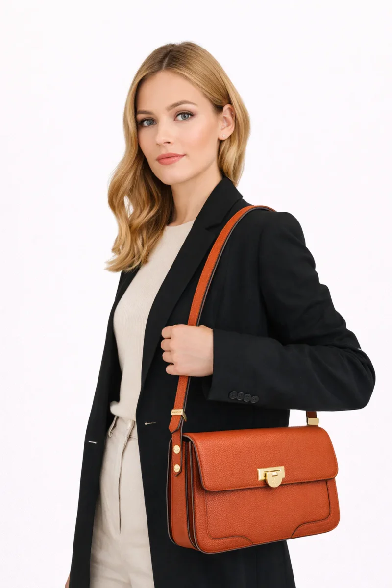 Les détails de finition, tels que les coutures contrastantes et les éléments dorés, rehaussent le design de ce sac, le rendant parfait pour compléter une tenue décontractée ou habillée. Ce modèle est idéal pour les femmes à la recherche d’un accessoire à la fois fonctionnel et tendance.