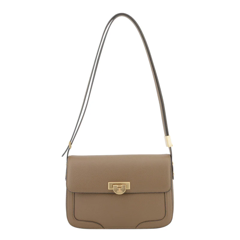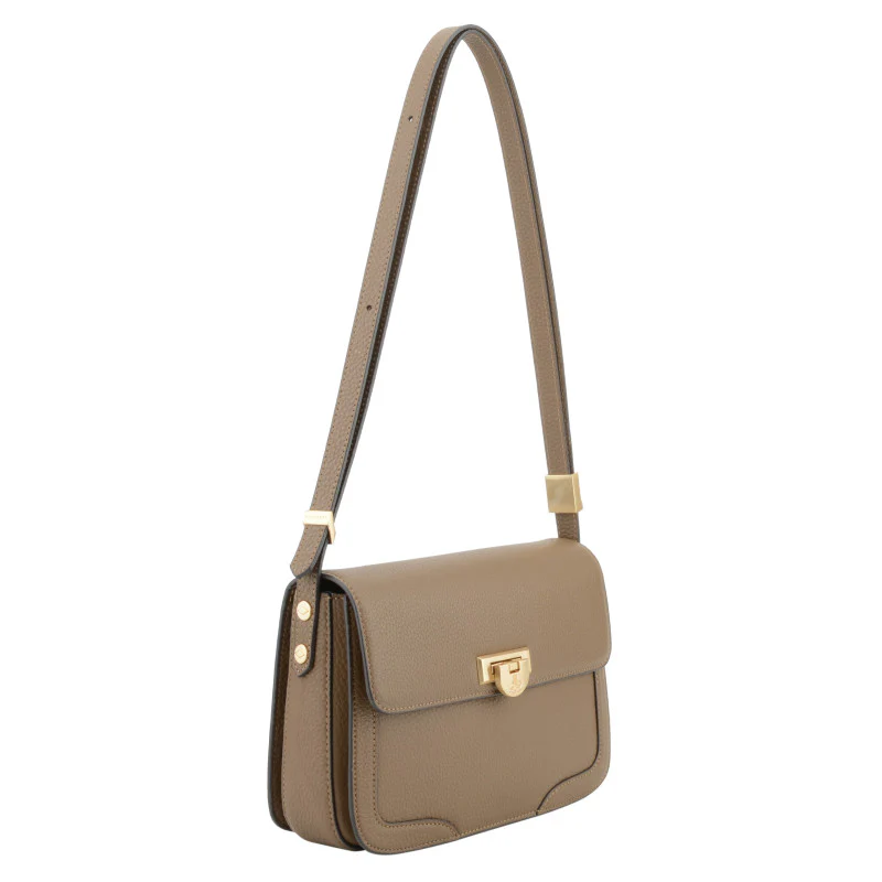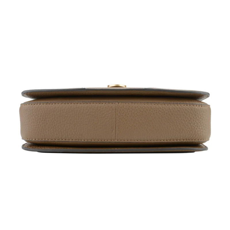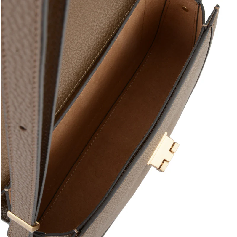 Avec sa couleur taupe, ce sac s’intègre facilement à diverses tenues, ajoutant une touche de sophistication à votre look. Sa silhouette rectangulaire classique, avec des bords légèrement arrondis, lui confère un aspect raffiné.