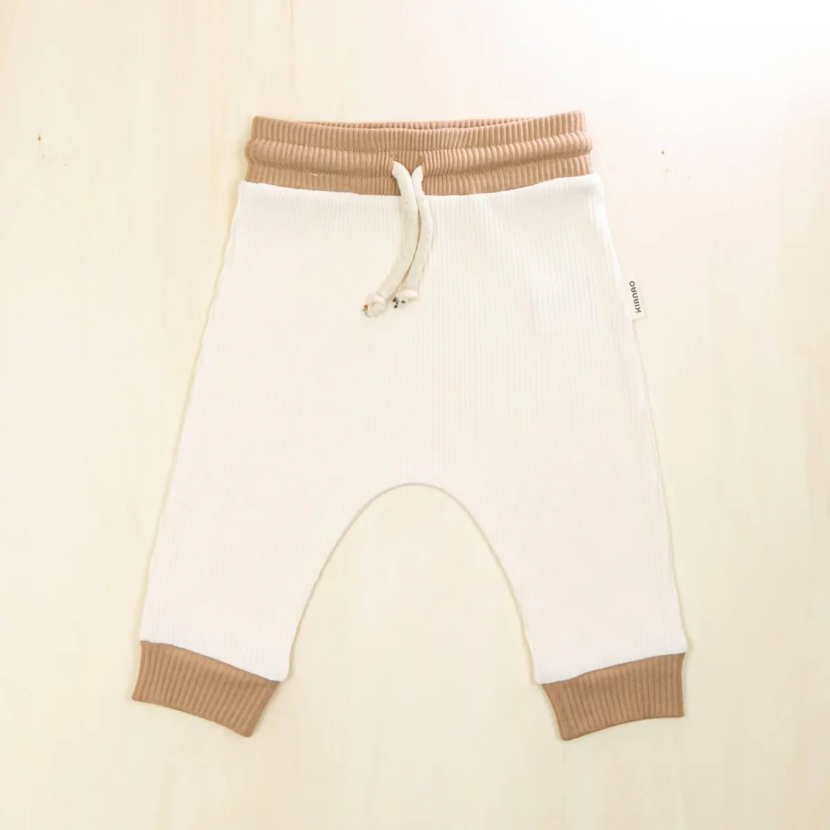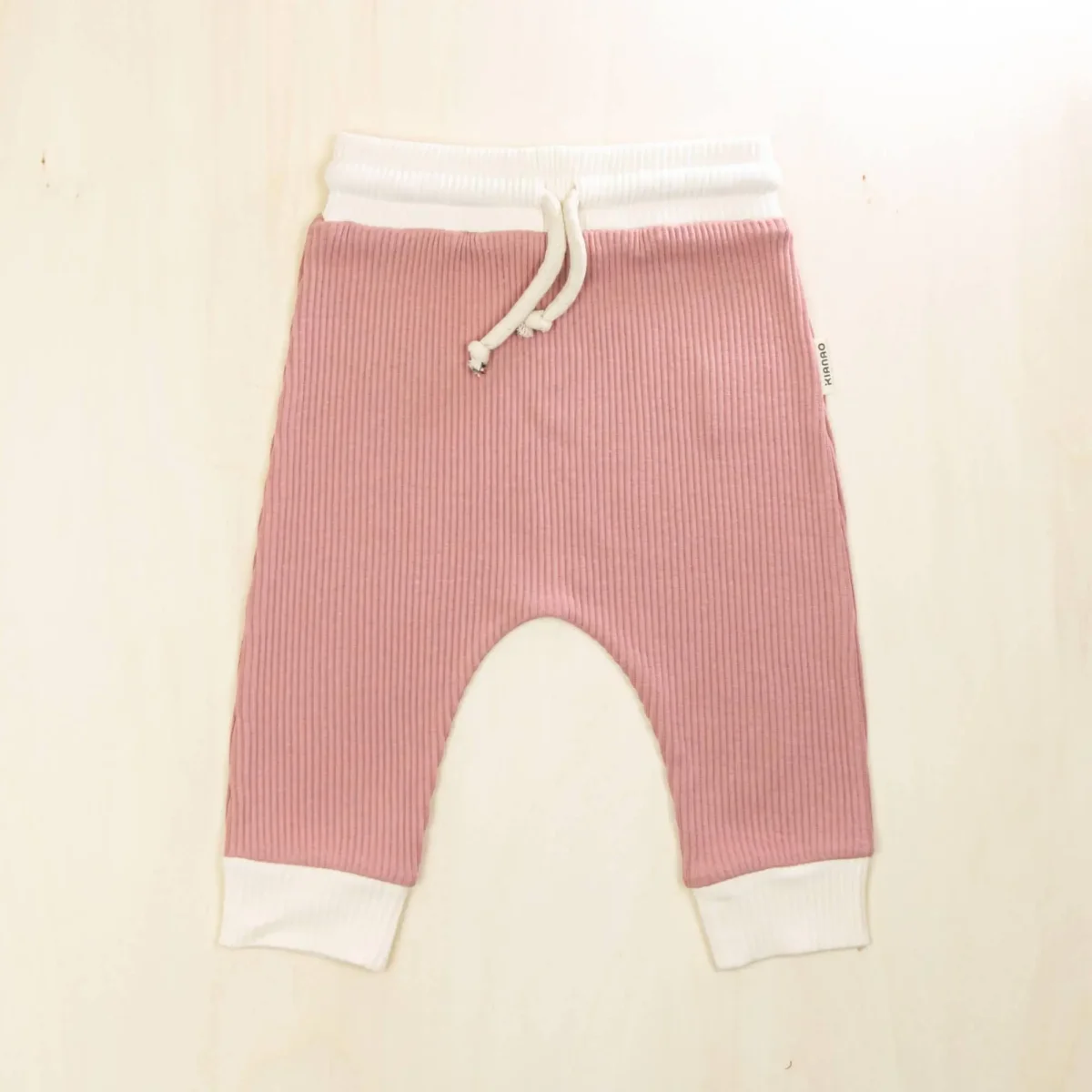 Our retro-inspired jogger pants blend the purity of 95% organic cotton with 5% elasthan, creating the perfect balance of softness and stretch. The classic drop-crotch design provides extra room for diapers and unrestricted movement, while the gently elasticized waistband sits comfortably without digging into your baby’s tummy. Contrasting white cuffs and waistband add a vintage athletic touch that’s both stylish and practical, helping to keep the pants in place during active play.