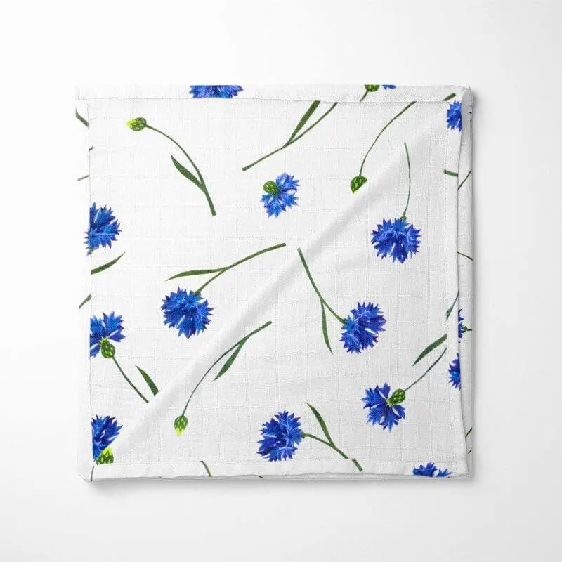 Thoughtfully sized for every stage of babyhood, the compact 58x58cm blanket is perfect for on-the-go comfort during stroller rides or car trips, while the generous 120x120cm version provides ample coverage for cribs, tummy time adventures, or as a toddler’s favorite companion. The serene blue cornflowers create a calming atmosphere that helps signal to your little one that it’s time to relax and rest.