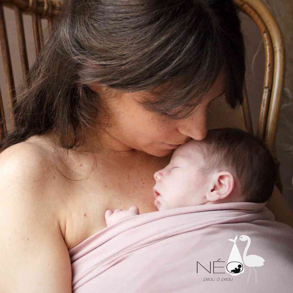 Ce bandeau permet de pratiquer le « peau à peau » aussi appelé « méthode kangourou » à la naissance de bébé. Il se porte comme un bustier, sur peau nue, en y glissant le nourrisson en position fœtale.