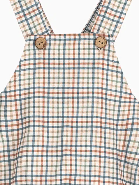 Barboteuse bébé à bretelles et carreaux – Bleu/vert