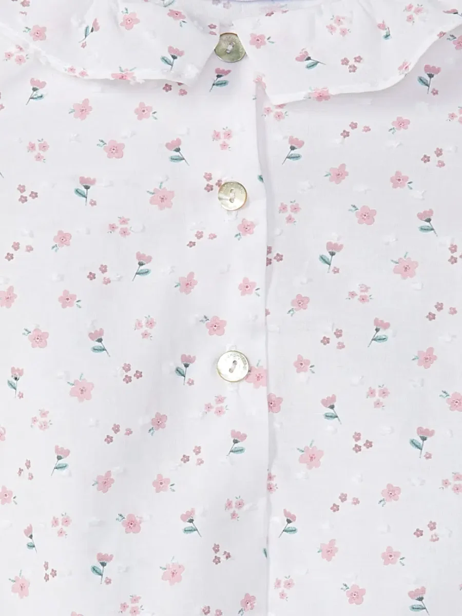 Le plumetis floral ajoute une texture subtile et délicate, renforçant l’élégance naturelle de la pièce.