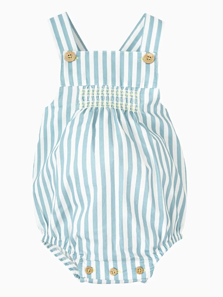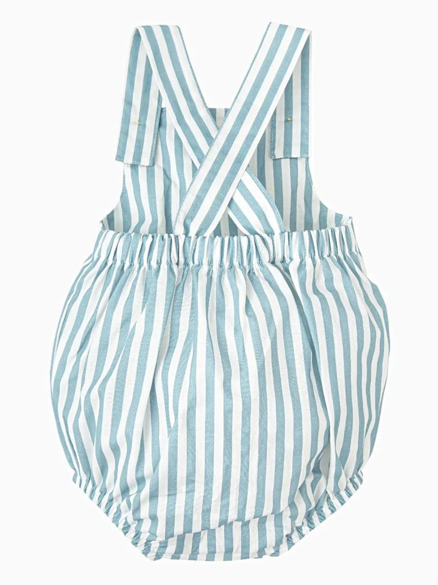 Offrez à votre petit garçon une tenue à la fois charmante et confortable avec notre barboteuse rayée bleu Méditerranée et blanc. Confectionnée en 100 % coton, cette pièce légère et respirante est idéale pour les journées d’été. Ses rayures nautiques élégantes évoquent la douceur des vacances, tandis que le détail de smocks jaunes délicatement brodés sur le devant ajoute une note de raffinement.
