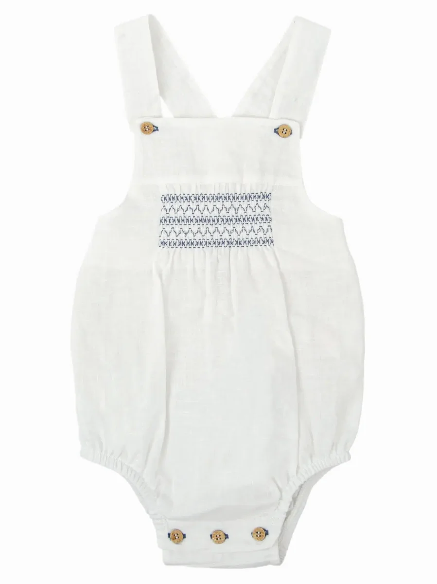 Barboteuse d’été mixte à smocks – Blanc