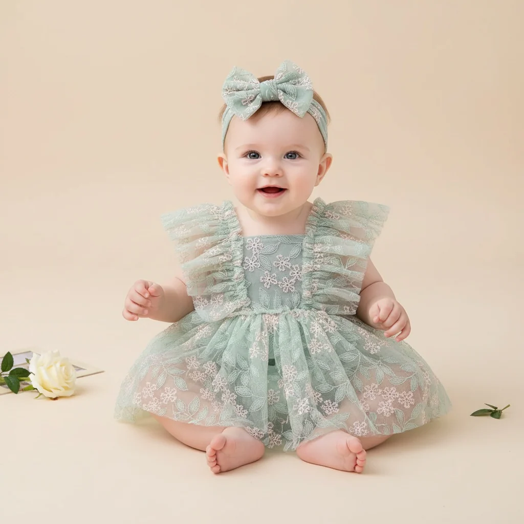 Offrez à votre petit trésor une touche de délicatesse avec notre exquise Barboteuse-Robe Bébé vert clair en Dentelle, ornée de motifs floraux brodés. Cette pièce élégante allie la douceur d’un délicat vert à la sophistication de la dentelle, créant une tenue mémorable pour des moments spéciaux.