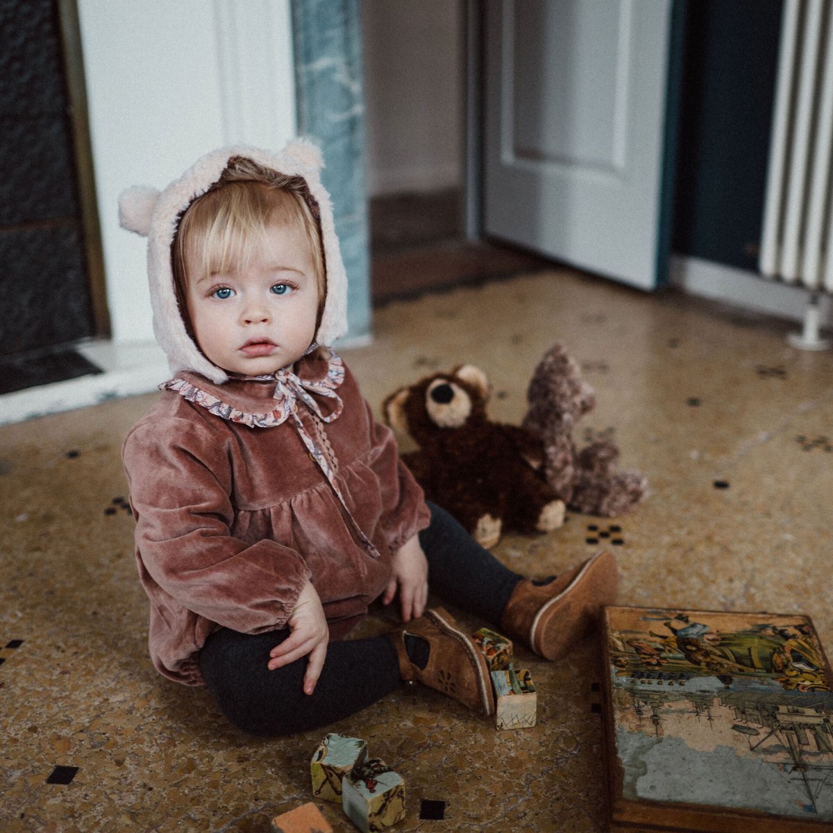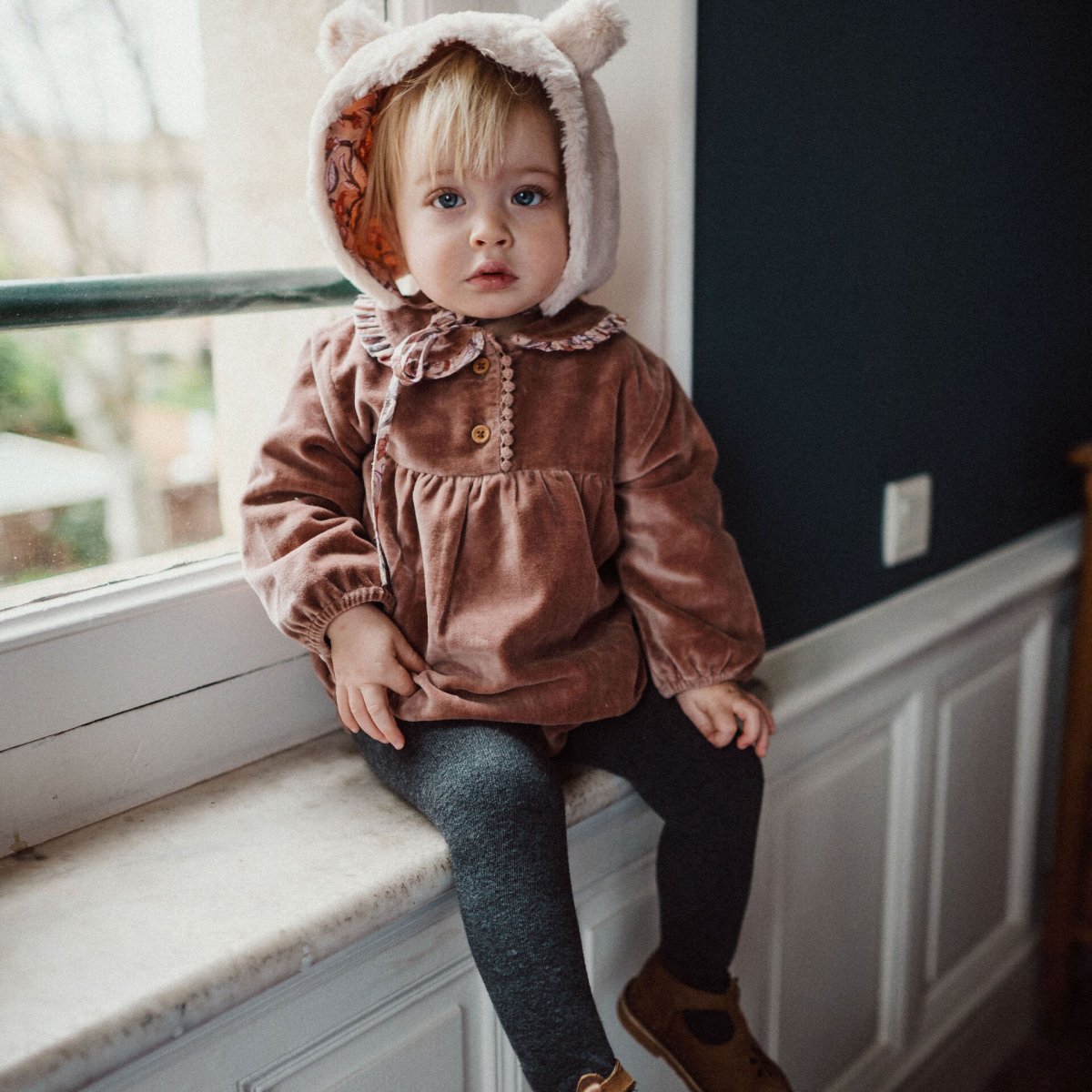 Barboteuse bébé en velours rose – hiverAdorable et confortable, cette barboteuse en velours rose pour bébé est parfaite pour l’hiver. À porter avec des collants, pratique pour le change grâce aux pressions entre les jambes. Son joli col Claudine avec volant fleuri apporte une touche raffinée et rétro. Une véritable pépite du vestiaire poétique des […]