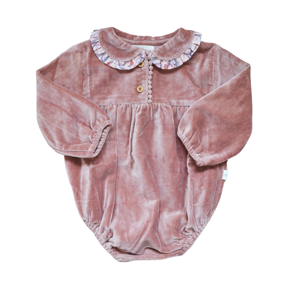 Adorable et confortable, cette barboteuse en velours rose pour bébé est parfaite pour l’hiver. À porter avec des collants, pratique pour le change grâce aux pressions entre les jambes. Son joli col Claudine avec volant fleuri apporte une touche raffinée et rétro. Une véritable pépite du vestiaire poétique des tout-petits.
