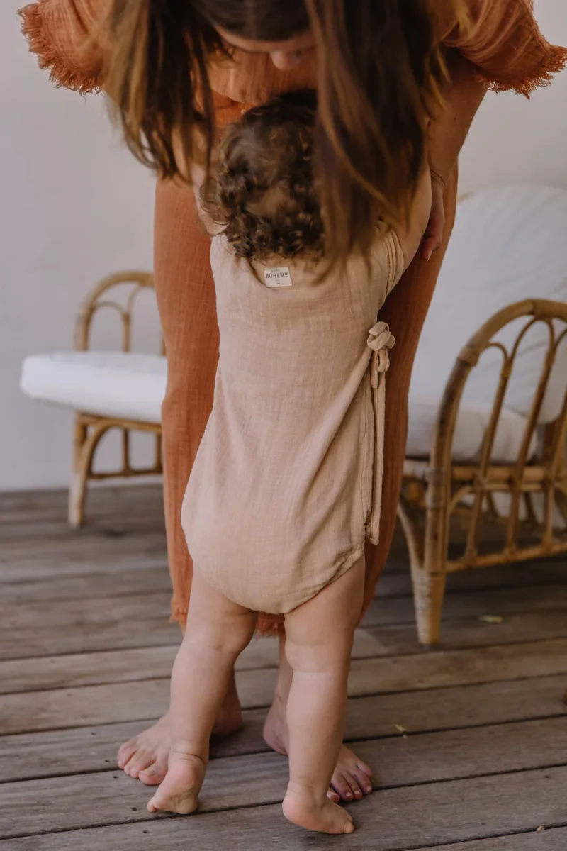 Ouverture cache-coeur pratique et boutons pressions à l’entrejambe.