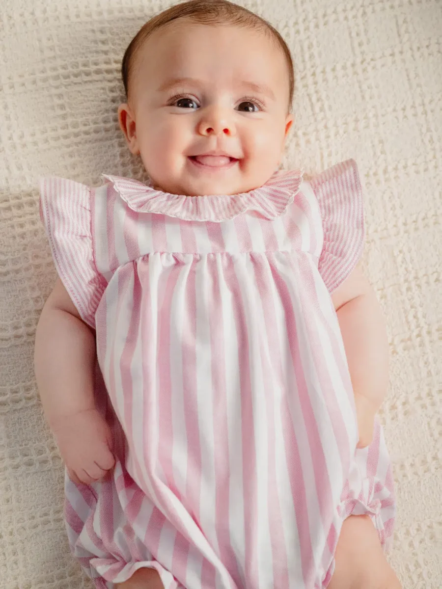 Adoptez cette barboteuse rayée rose et blanche pour un look intemporel, délicieusement rétro, mais toujours dans l’air du temps. Un indispensable du dressing des bébés filles, à la fois chic, pratique et absolument adorable !
