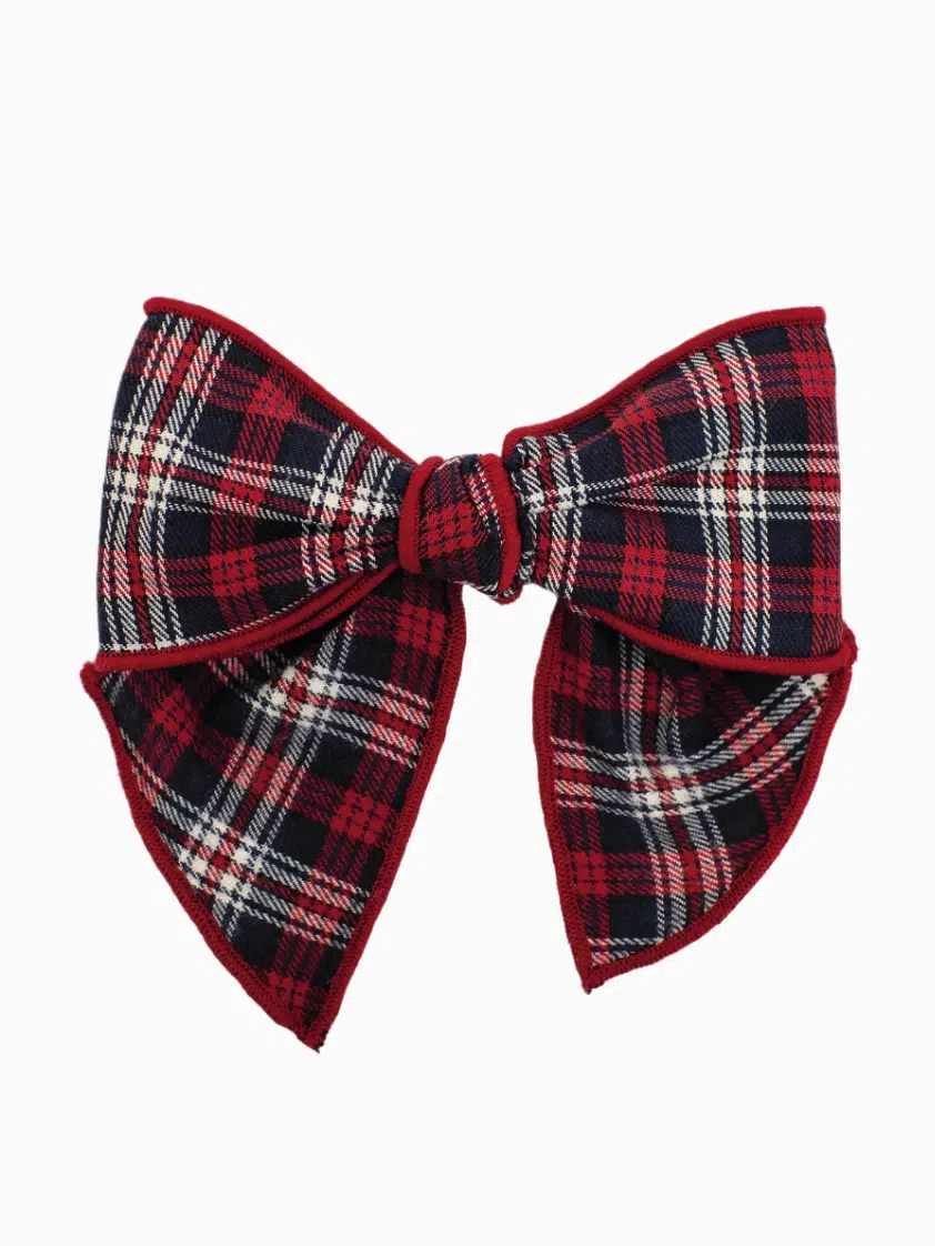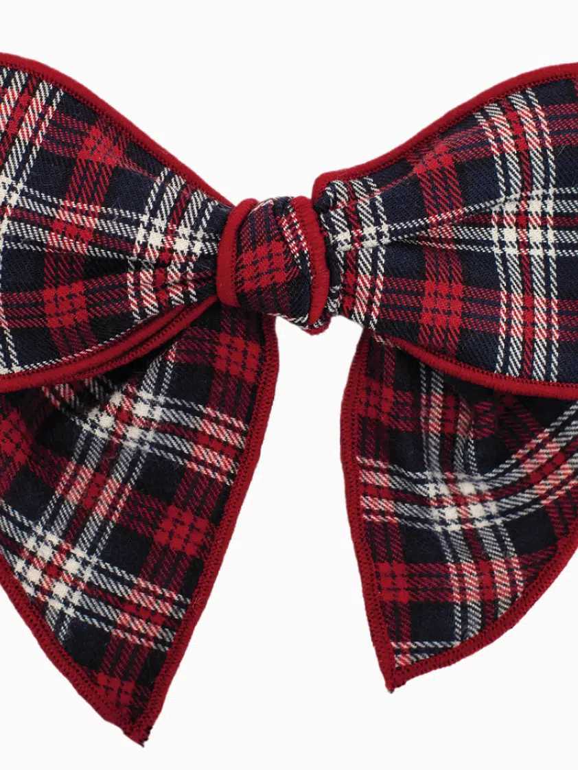 Barrette à noeud écossaise – Rouge/bleu
