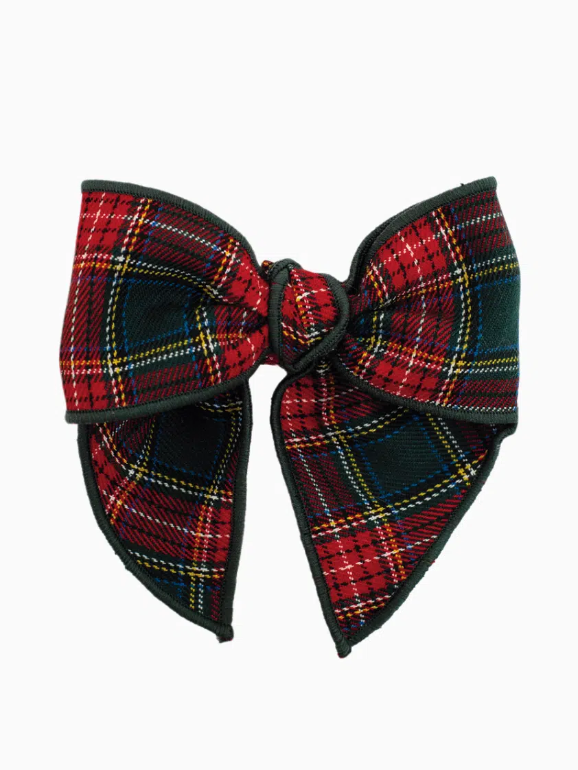 Barrette écossaise traditionnelle à noeud – Rouge/vert