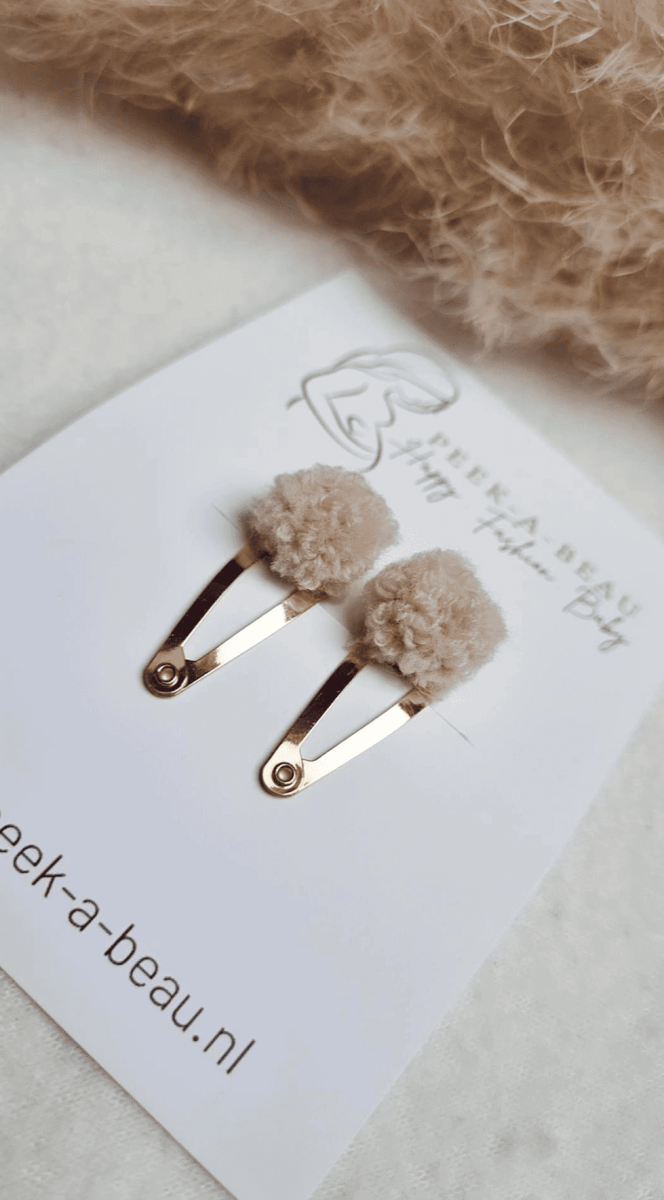 On craque pour ce lot de 2 barrettes à pompons ! Entièrement fabriquées à la main, elles mettront une touche de fantaisie aux tenues de votre petite fille ! Ces barrettes sont de petites tailles et conviennent plutôt entre 0 et 2 ans.