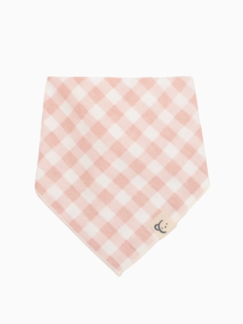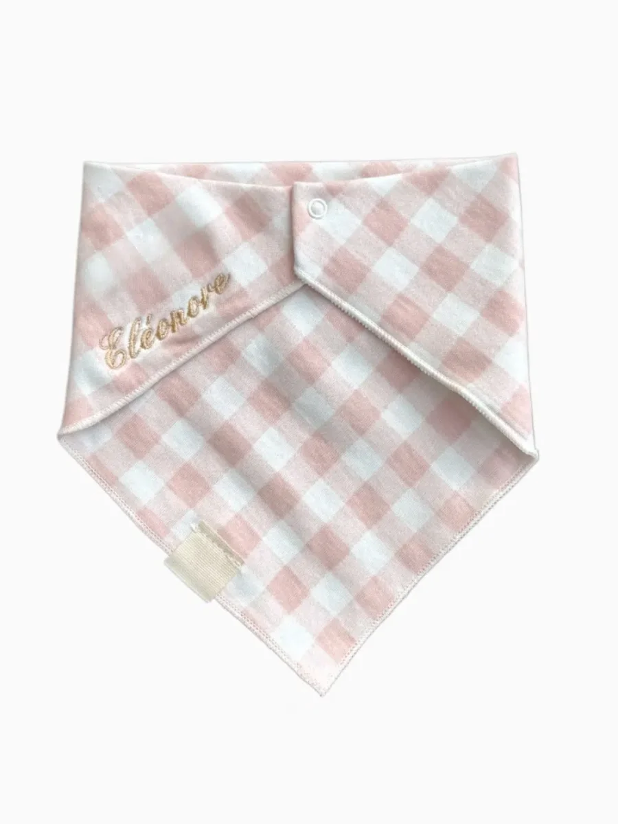 Un bavoir vichy rose et blanc, plein de fraîcheur et de délicatesse, pour une touche de romantisme rétro.