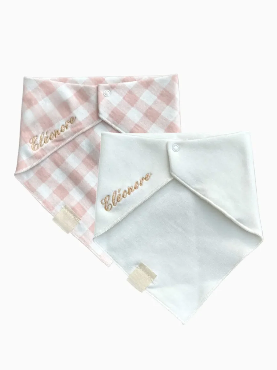 Bavoir bandana (lot de 2) – Rose – Personnalisable