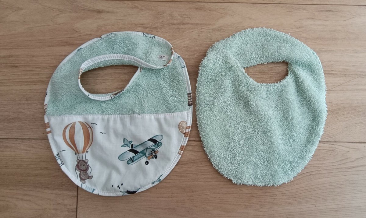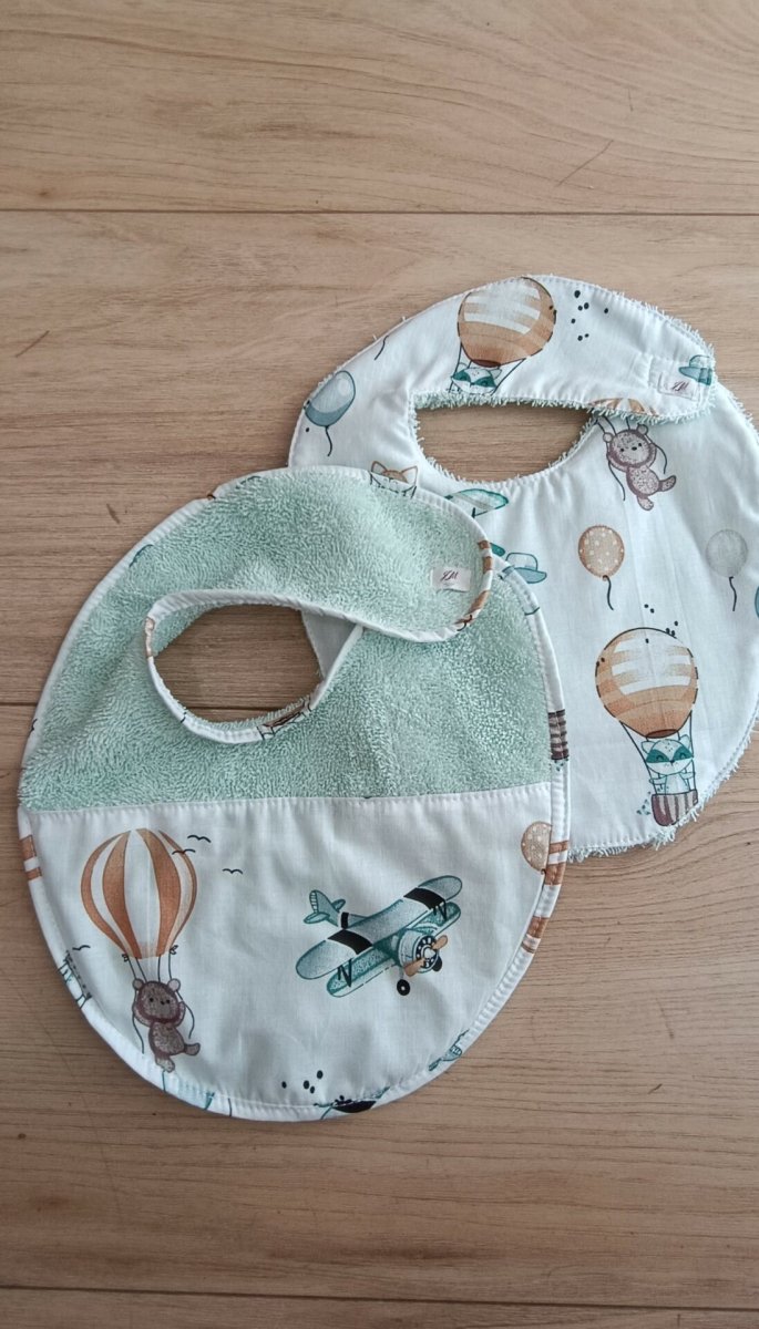 Bavoirs bébé en coton et éponge, fait main, vendus par lot de 2 :
