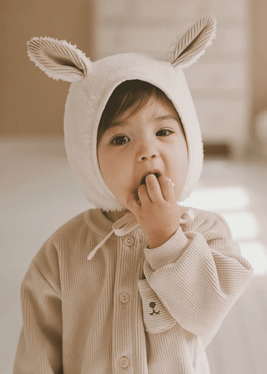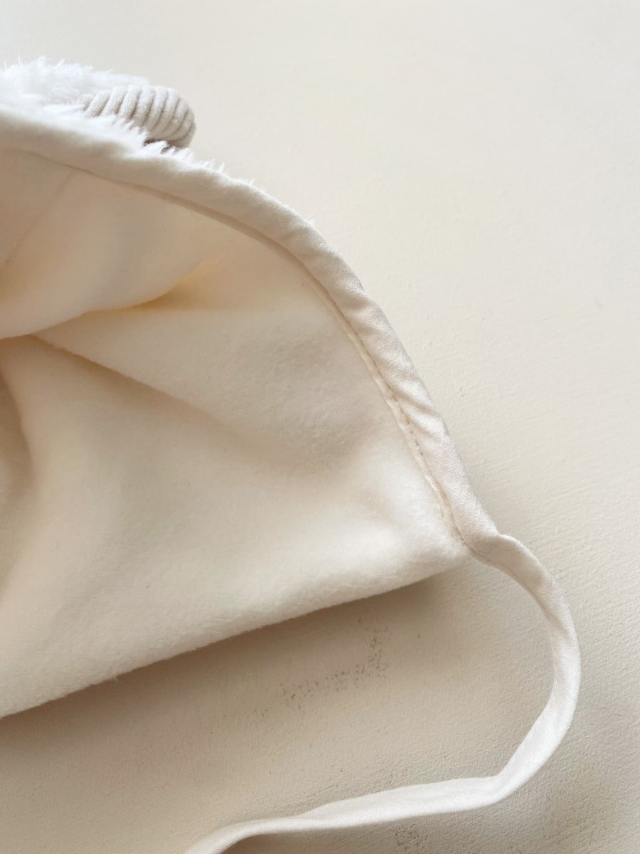 Ce joli béguin pour bébé doublé polaire tiendra chaud cet hiver avec style ! On craque pour ces jolies oreilles en velours côtelé !