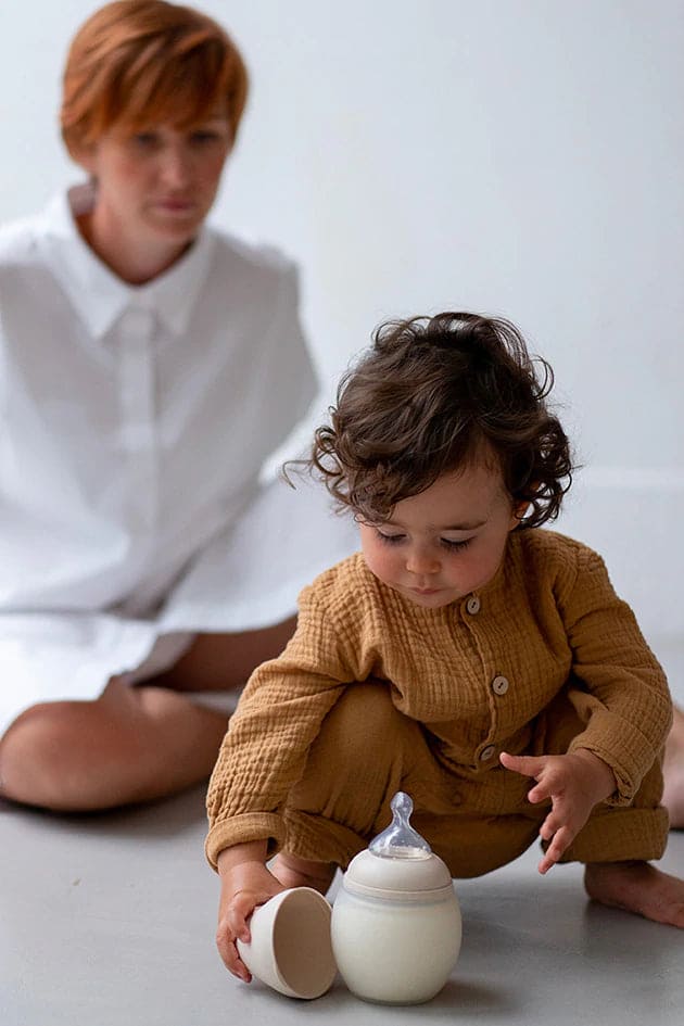 Le biberon « Bibrond » de Elhée 240 ml est le format le plus polyvalent, il couvre les besoins des bébés de 0 à 9 mois (et plus si affinité !) On aime ce biberon pour son design tendance et son innovation ! Ses formes rondes et sa texture souple, facilitent la prise en main facile des bébés, tout en douceur et émotion. Conçu en silicone médical, ce biberon ne contient aucune substance susceptible de nuire à la santé de votre bébé (0% de bisphénol, phthalate…). Son système de fermeture unique et breveté du biberon Elhée exclut tout risque de contact du lait avec le plastique…