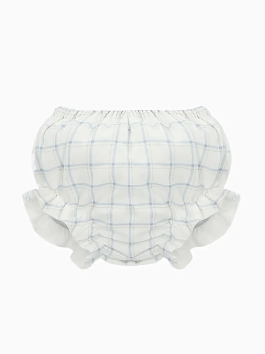 Bloomer bébé fille à carreaux bleu ciel – Blanc