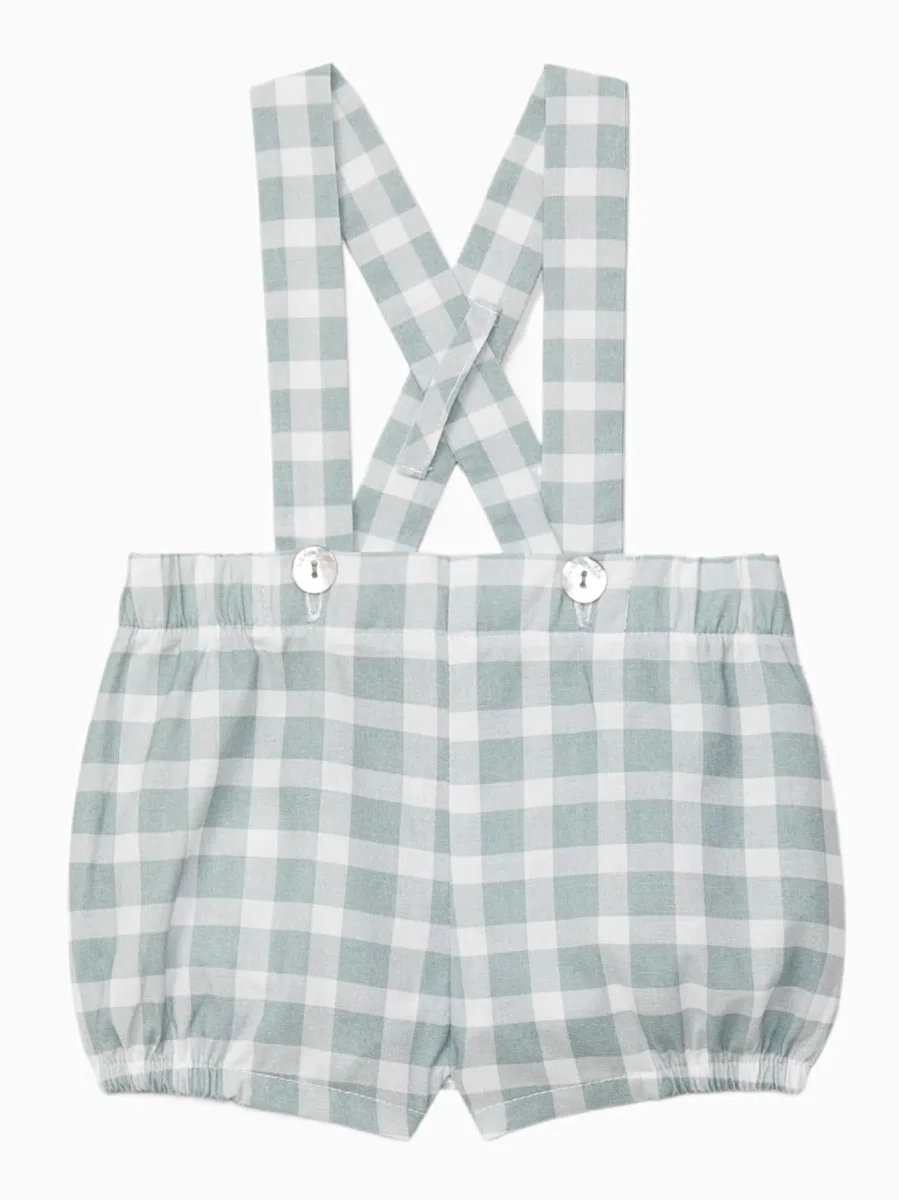 Bloomer bébé garçon à bretelles et carreaux – Vert