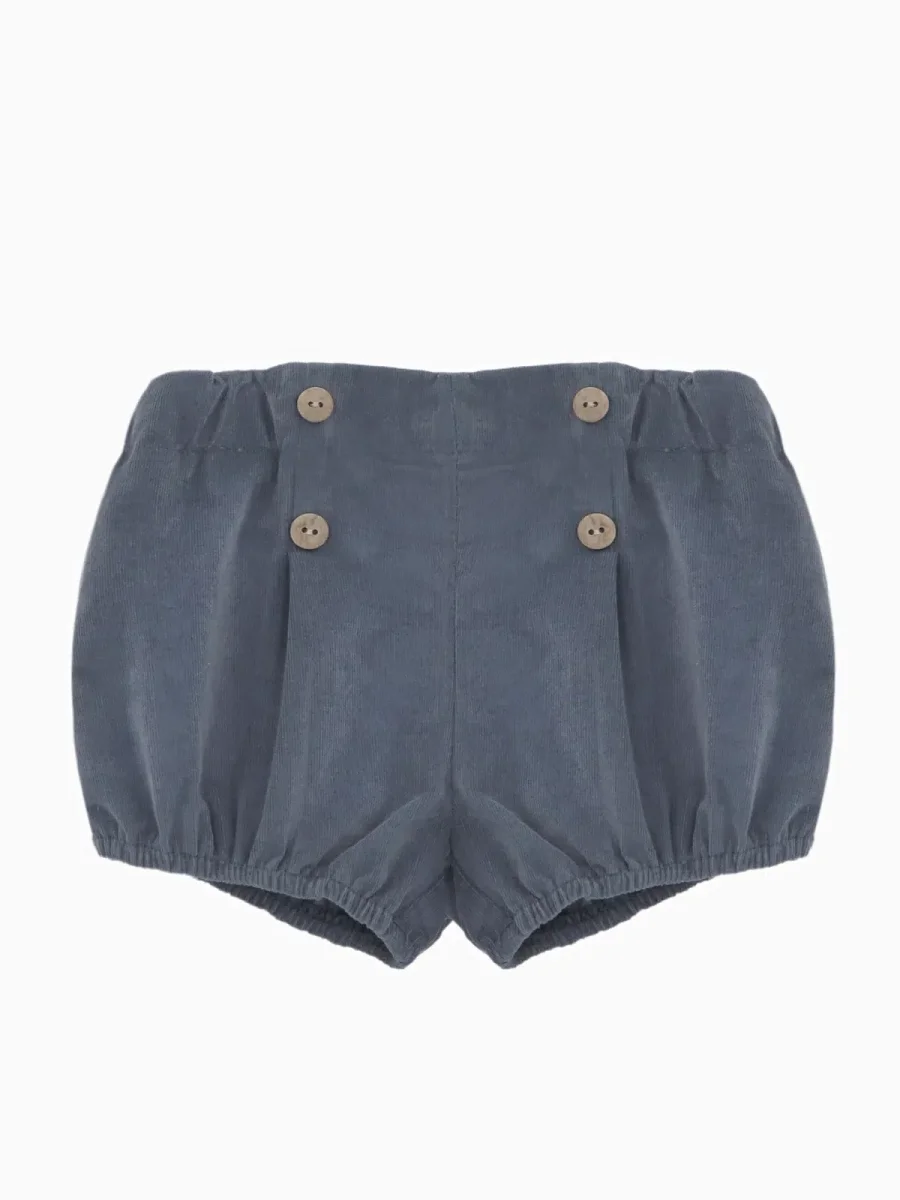 Notre bloomer en velours côtelé bleu apporte une touche authentique et chaleureuse dans le vestiaire des tout-petits. Le velours côtelé, doux et résistant, évoque les promenades hivernales et les moments paisibles passés à explorer le monde, tout en offrant une note rétro discrète qui traverse les saisons sans se démoder.