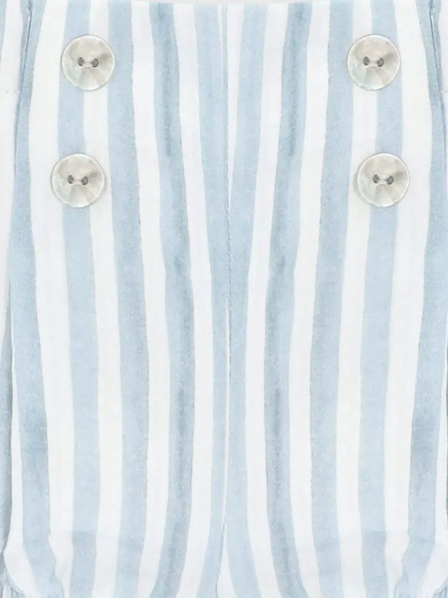 Les rayures aquarellées apportent légèreté et fraîcheur à l’ensemble, et le design raffiné s’intègre facilement avec d’autres pièces du vestiaire bébé, comme les blouses ou cardigans aux tons neutres.