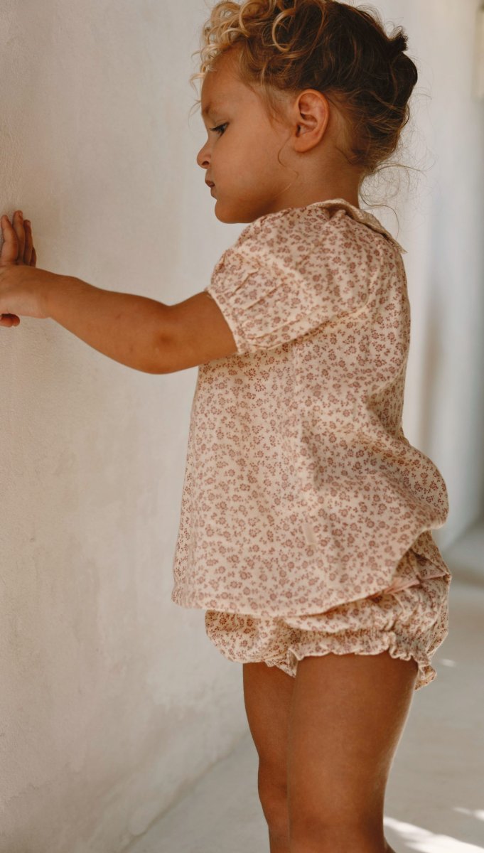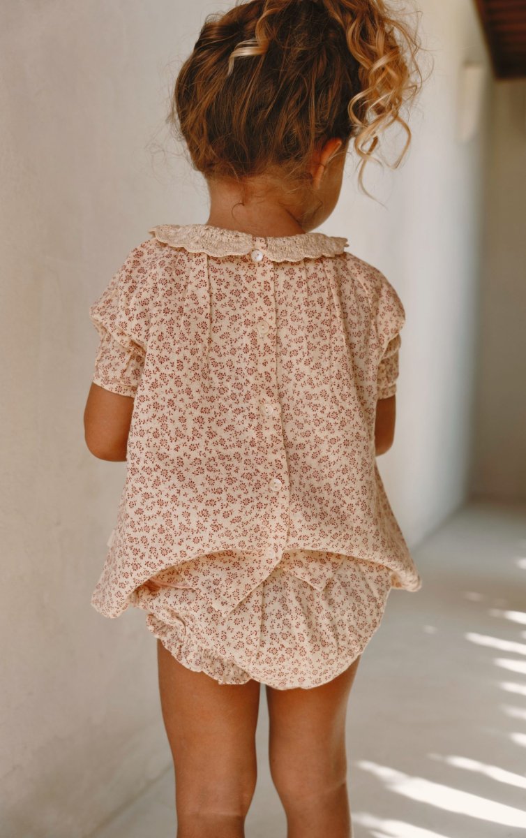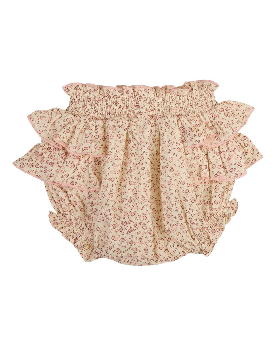 Le bloomer Lise est une pièce à la fois adorable et confortable. Confectionné en tissu doux aux imprimés rose, il est doté de deux petits volants de chaque côté pour une touche délicate et poétique.