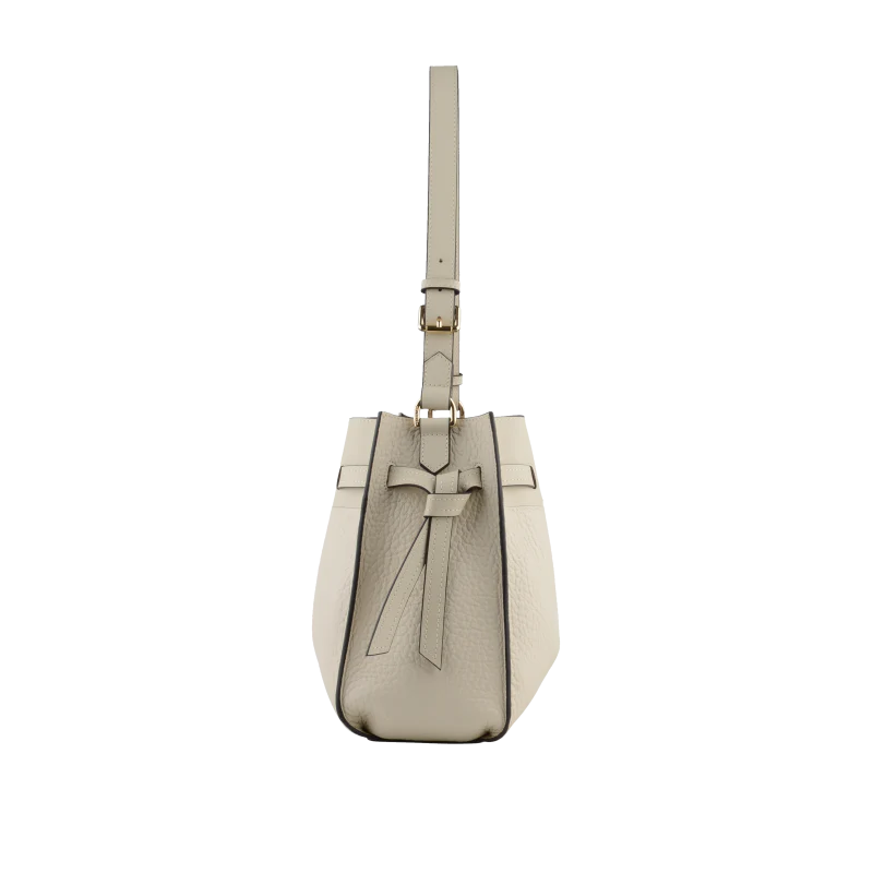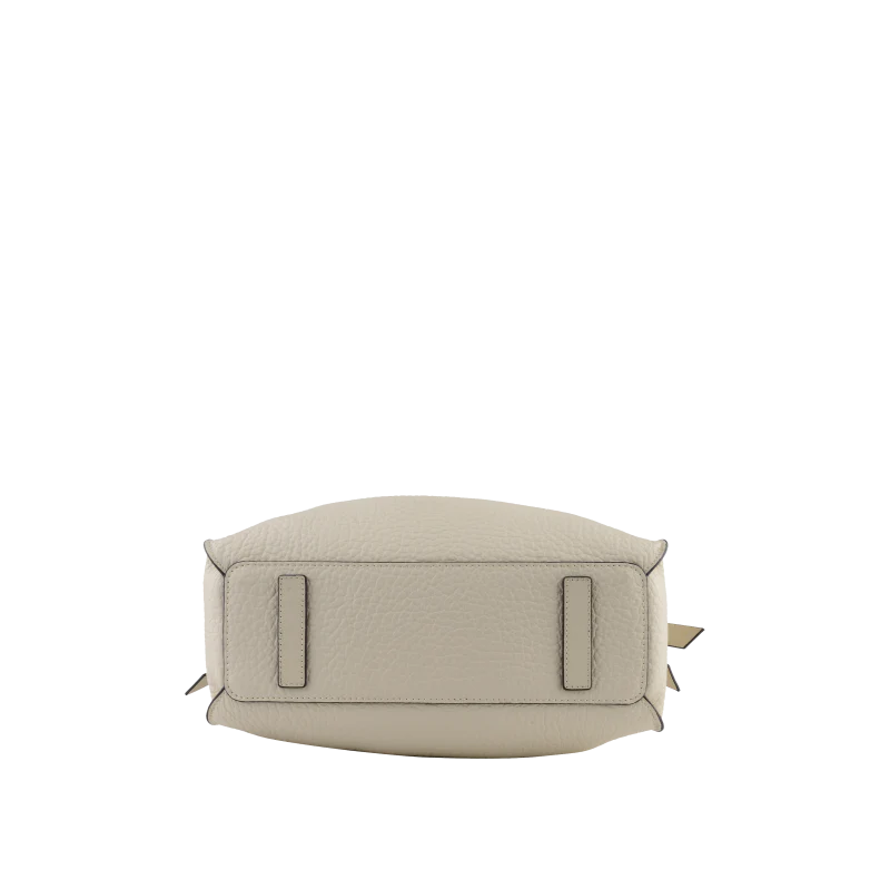 Fabriquée en cuir de vachette texturé, la surface de la besace présente un aspect grainé qui apporte à la fois une dimension tactile et visuelle. Sa silhouette légèrement structurée, avec des côtés arrondis et une base stable, crée une forme élégante et contemporaine qui attire le regard.