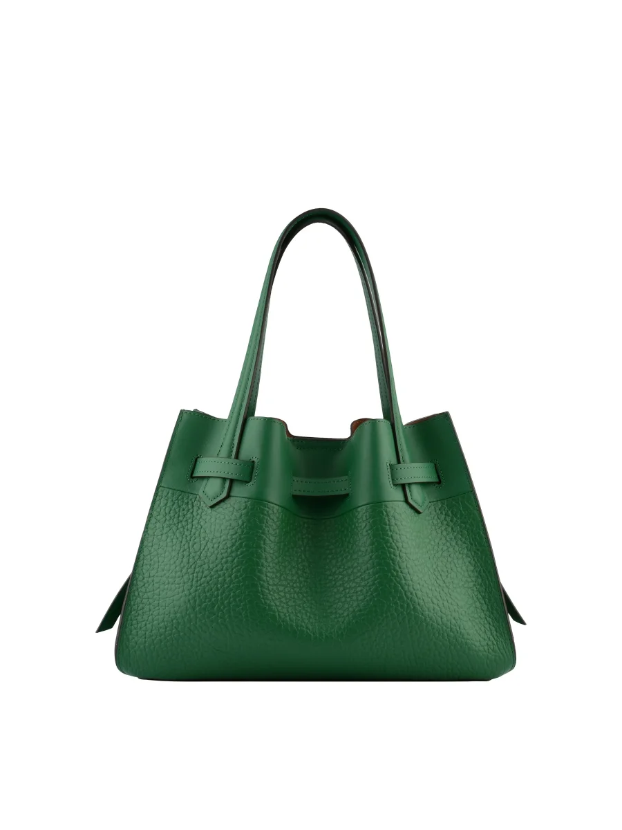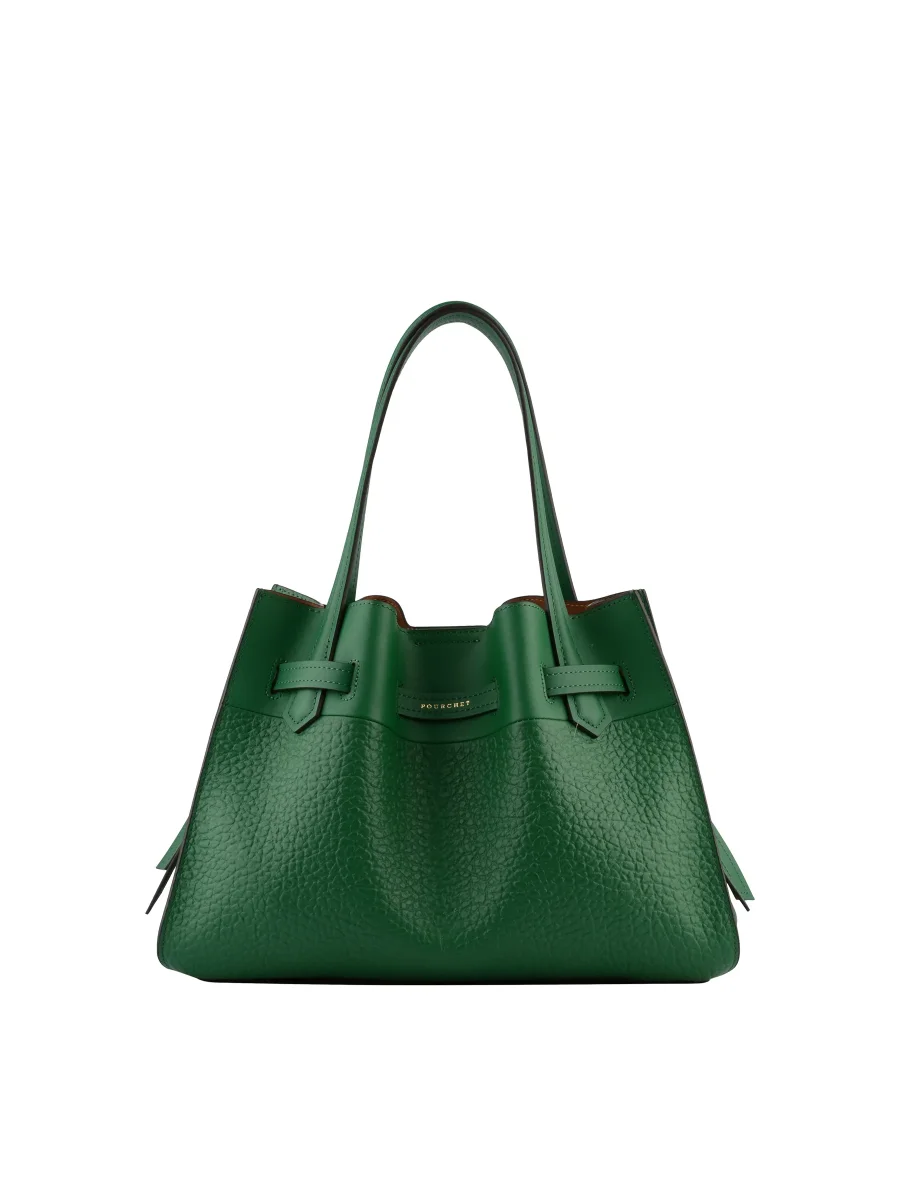 Conçu en cuir de vachette texturé, ce sac offre une finition durable et raffinée. Sa silhouette structurée, agrémentée de lignes douces, lui confère un aspect à la fois contemporain et classique. Il est doté de deux poignées supérieures pour un port à la main ou au coude, et d’une bandoulière amovible et réglable pour un port épaule pratique.