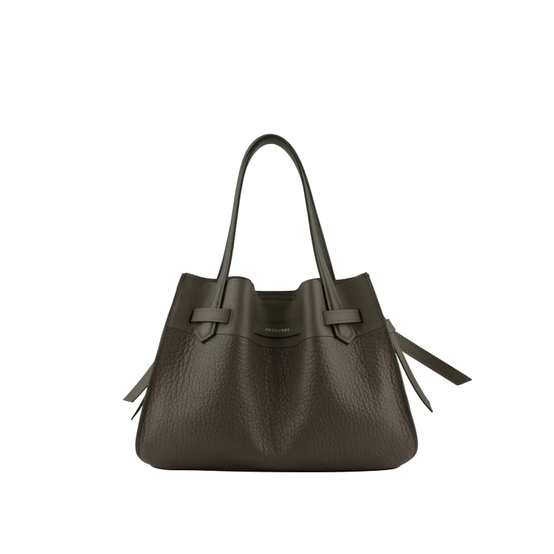 Fabriqué en cuir de vachette texturé, ce sac allie luxe et durabilité. Sa silhouette structurée, avec des lignes douces, permet au sac de se tenir debout tout en offrant une certaine souplesse, ce qui le rend à la fois chic et fonctionnel.