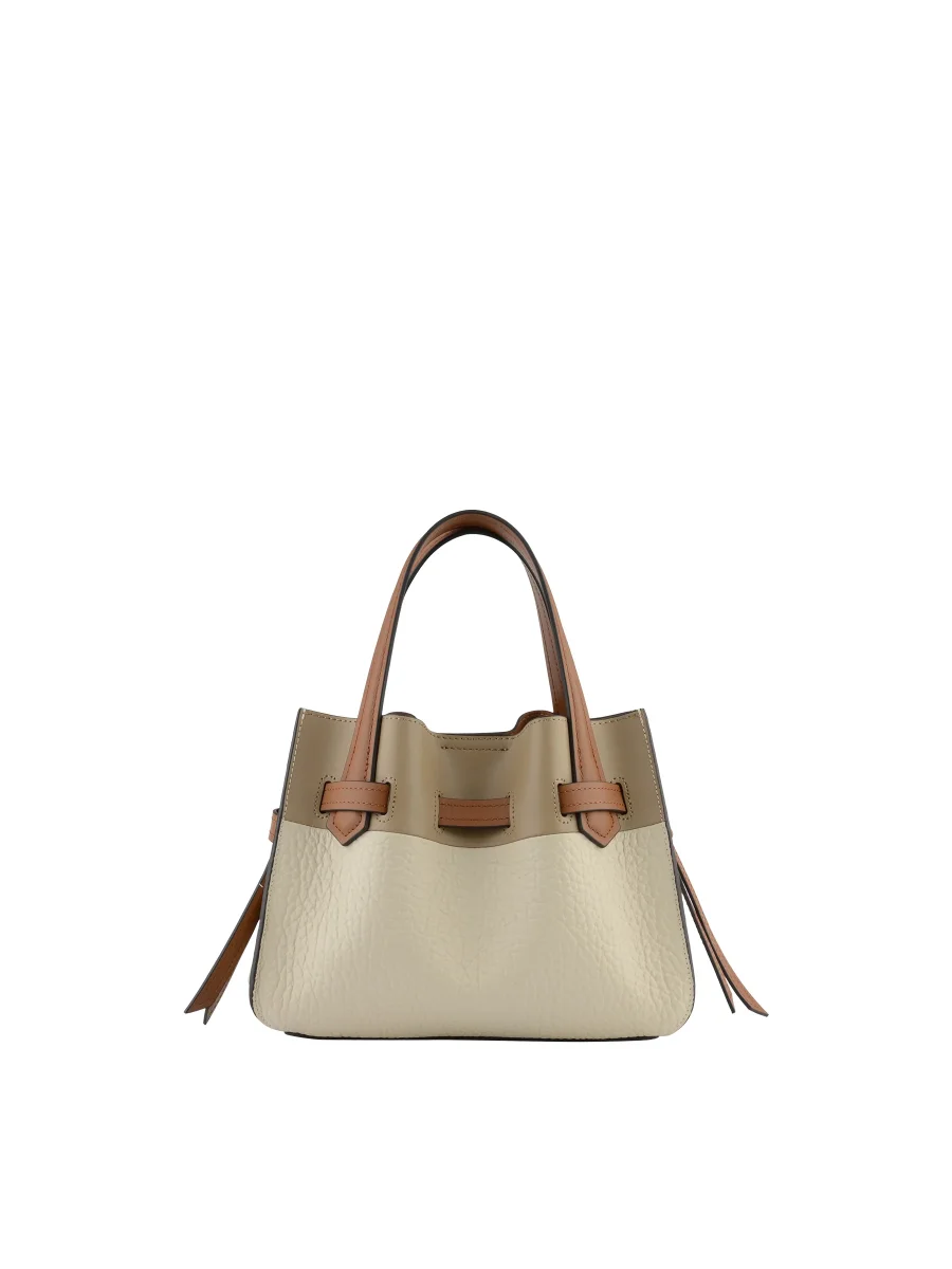 Le design structuré et moderne du sac est accentué par ses lignes douces et ses attaches latérales, offrant à la fois style et flexibilité. Il peut être porté de différentes manières grâce à ses deux poignées courtes pour un porté à la main et une bandoulière amovible et ajustable pour un porté épaule ou en croisé.