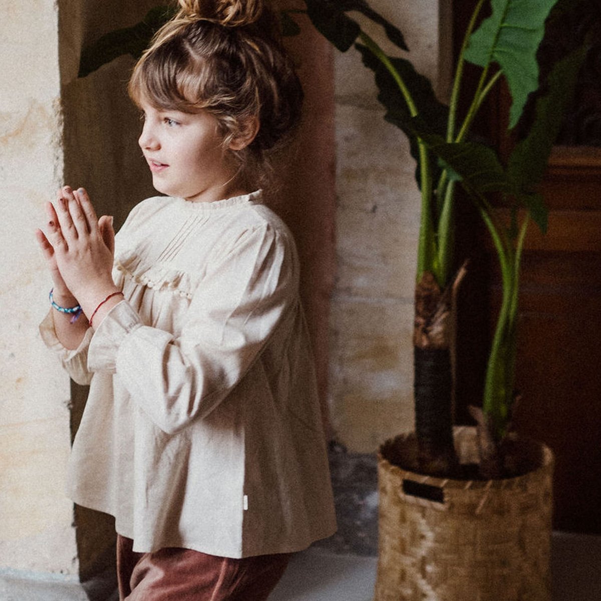 Raffinée et intemporelle, cette blouse en coton écru pour bébé et enfant se distingue par ses détails délicats : dentelle sur le buste, col haut à volant et boutonnage dans le dos pour un habillage facile. Confortable et élégante, elle se porte aussi bien au quotidien que pour les jolies occasions d’hiver.