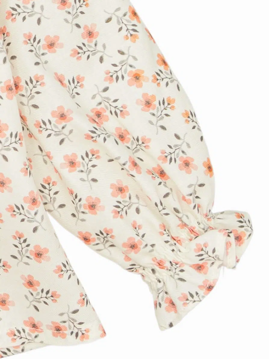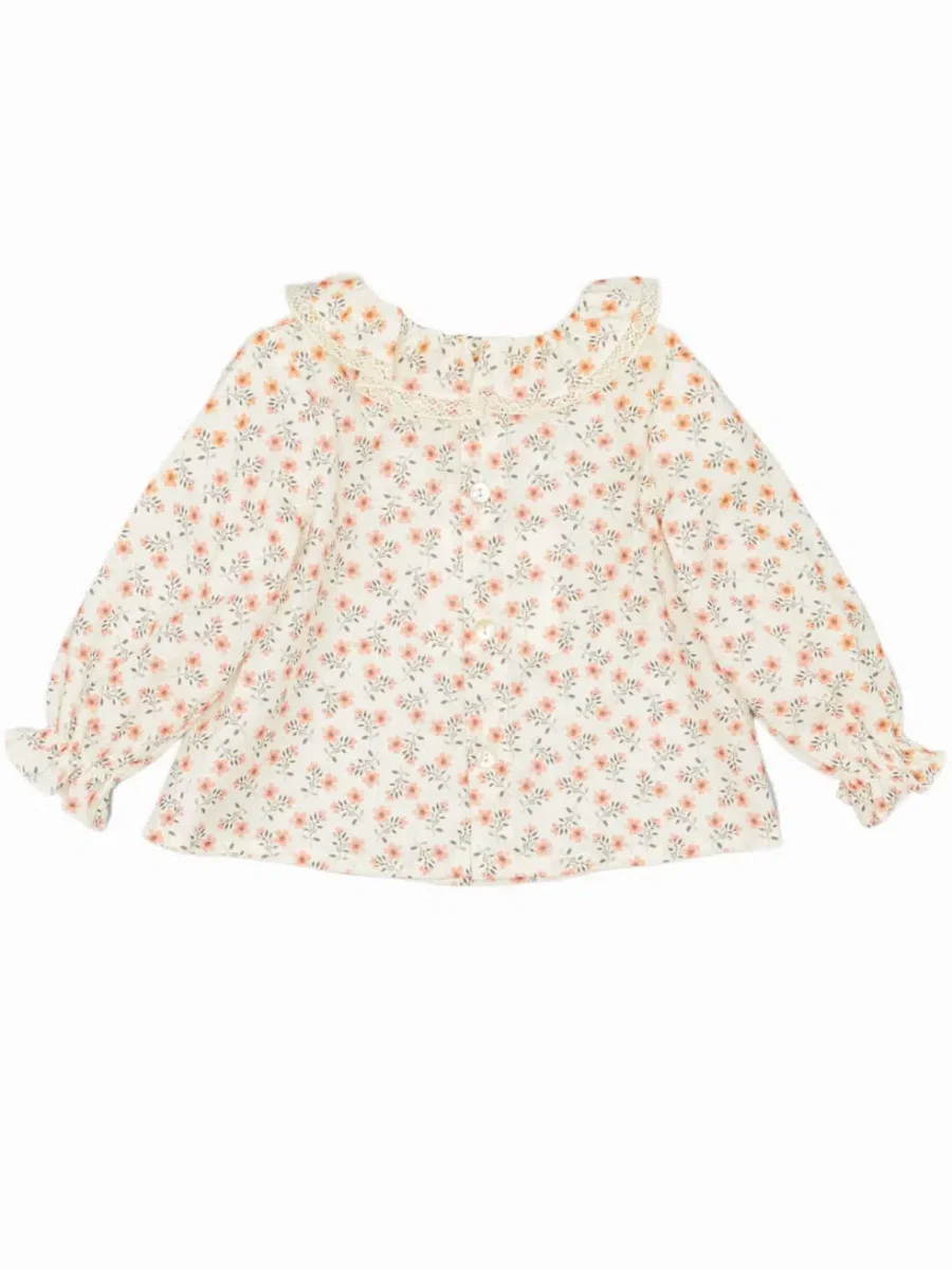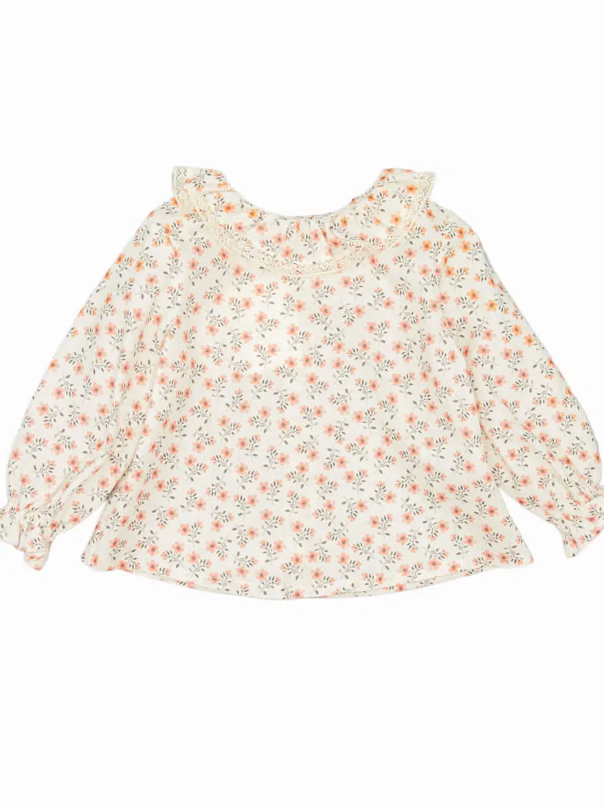 Blouse fille à col dentelle et imprimé fleuri – Crème