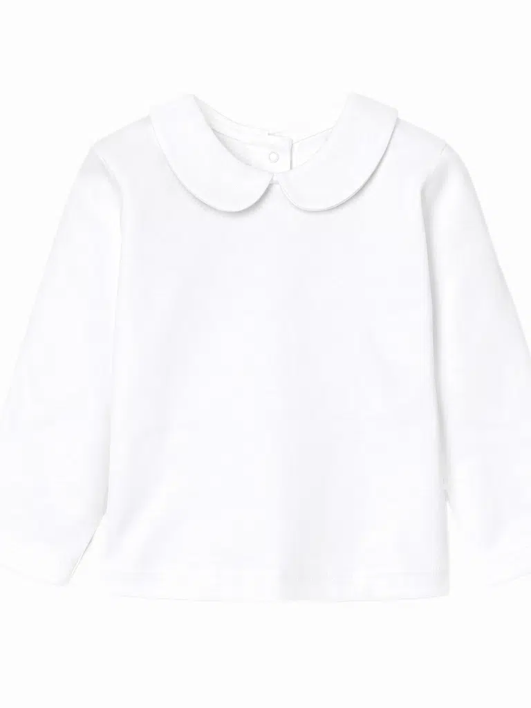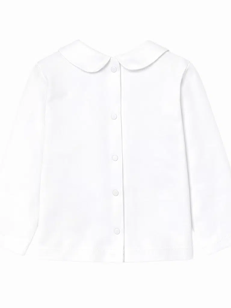 Avec sa coupe sobre et son col rond classique, cette blouse blanche traverse les saisons sans perdre de son élégance. Elle incarne un style intemporel, fidèle à un vestiaire enfantin soigné.
