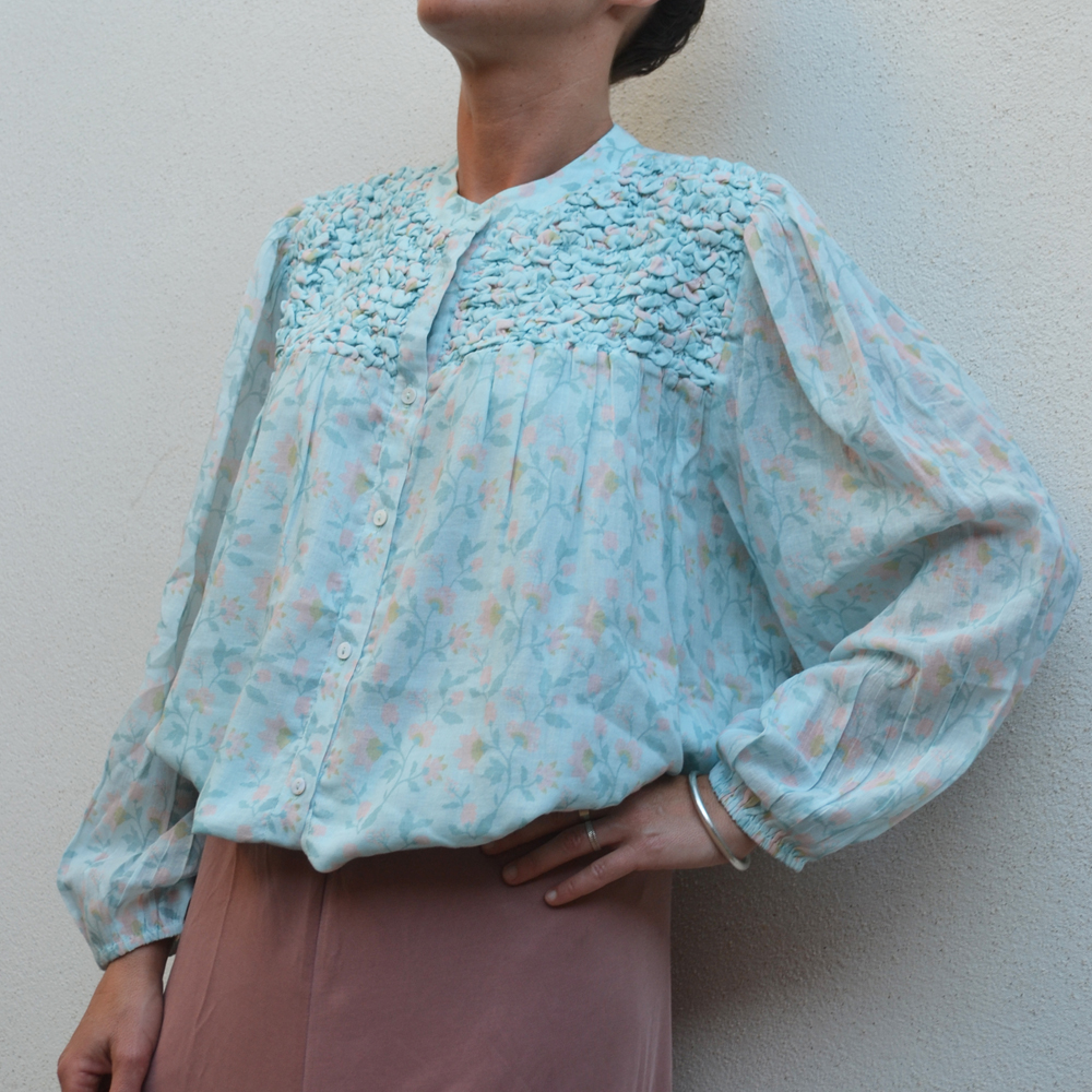 Blouse femme 100% coton, voile de coton imprimé fleuri très léger, ideal pour l’été